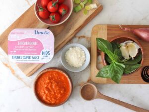 Take the tub out of the freezer and leave it outside for a few minutes. Take a clean knife and cut the slightly defrosted meal in two. Lift the one part out and place it in a bowl to heat it in the microwave. Alternatively, heat it in a small pot on the stovetop. The other half of the frozen meal left in our tub, you can safely put back in the freezer.