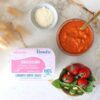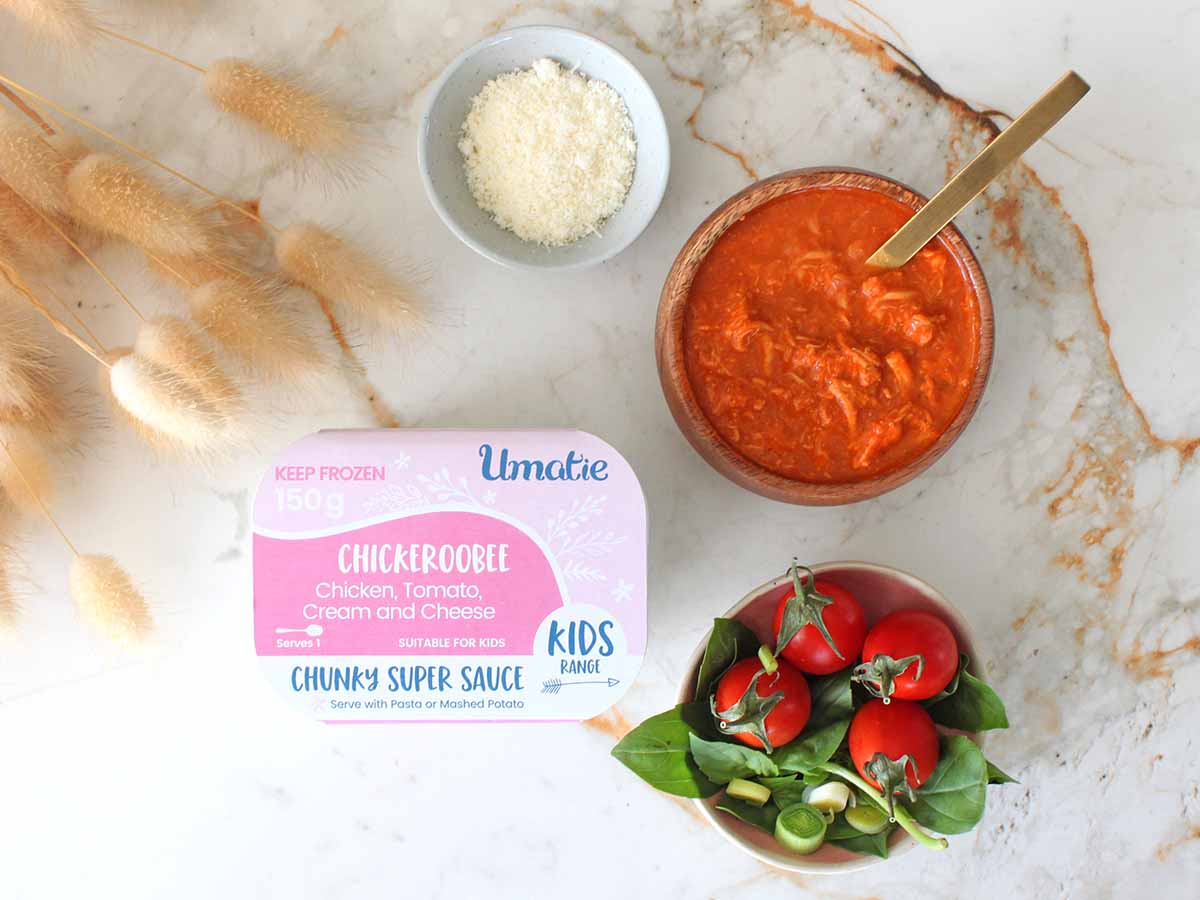 Tomato Puree Mix (Tomato Paste, Water) (43%), Free Range Chicken (16%), Full Cream Milk, Cream (7%), Pecorino Cheese (Milk, Salt, Selected Cheese Cultures, Microbial Lipase/ Piccantase, Calcium Chloride, Non-Animal Rennet) (6%), Leek, Chicken Broth (Water, Free Range Chicken), Basil Mix (Basil, Coriander, Vegetable Oil (Olive Fruit), Lemon Juice), Onion Mix (Onion, Garlic), Brown Sugar, Pink Salt, Vegetable Oil (Olive Fruit).