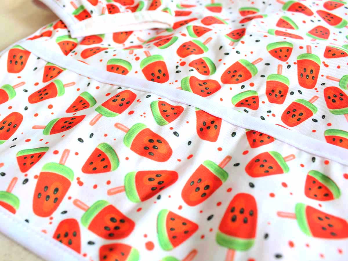 - Easily fastens with 2 strings (ties) at the back